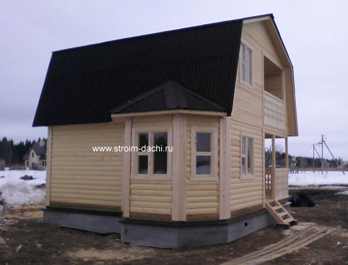 Загородный дом 6.0 x 8.0 с лоджией, балконом и кукушкой.