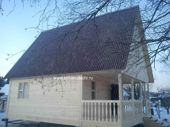 Загородный дом 6.0 x 8.0 с лоджией, балконом и кукушкой.