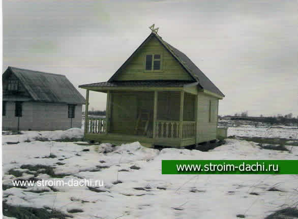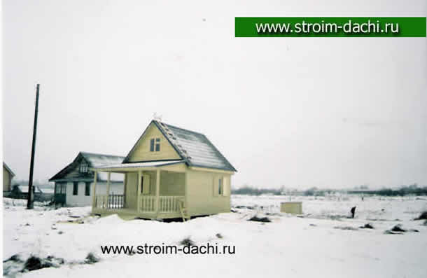 Представленный каркасно-щитовой загородный дом 5 x 5 с террасой 2.5 x 5 (общая площадь застройки 5 x 7.5) построен нашей строительной компанией в середине 2000-х годов.