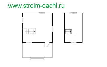 Дом может комплектоваться одно - или двухмаршевой лестницей. Лестничный марш выполняется из бруса 100х150мм, ступеньки - шпунтованная доска 36мм, перила - 50х80мм, лестница с деревянными балясинами (круглые балясины).