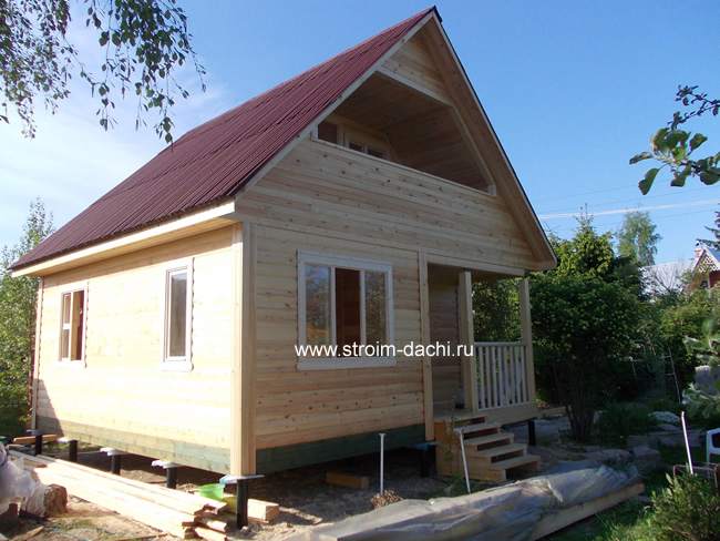 Загородный дом 6.0 x 8.0 с лоджией, балконом и кукушкой.